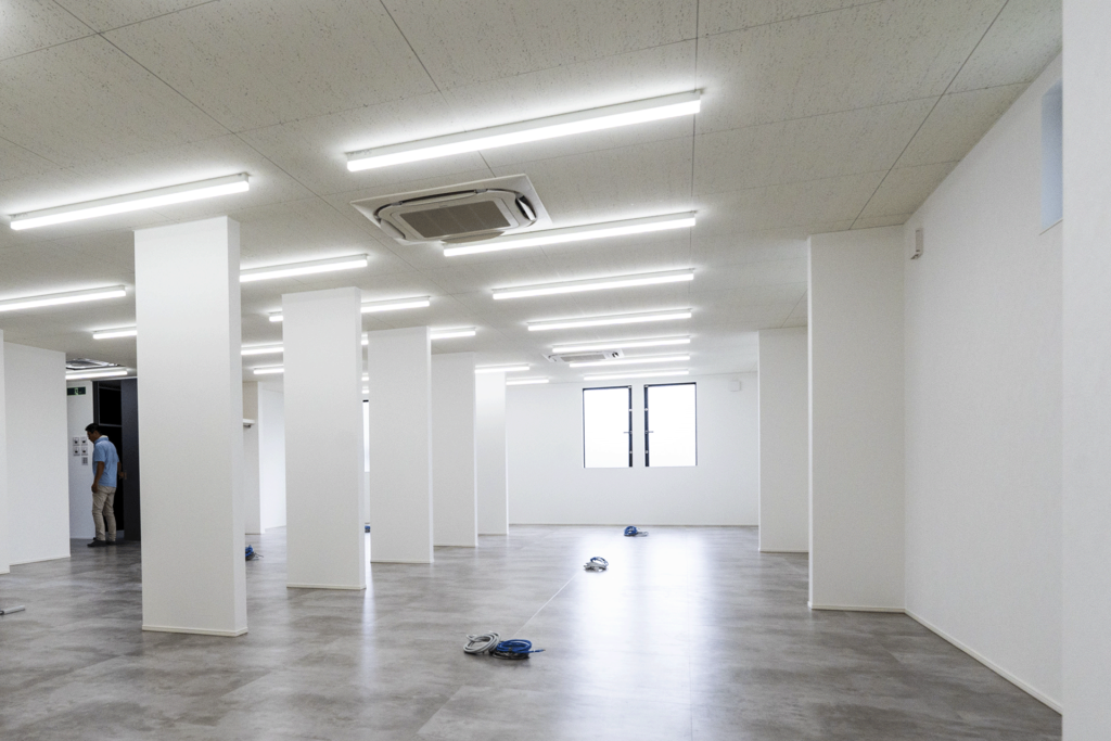 「社員同士がコミュニケーションを取りやすい大空間を、最低限の柱と壁で成立したい」