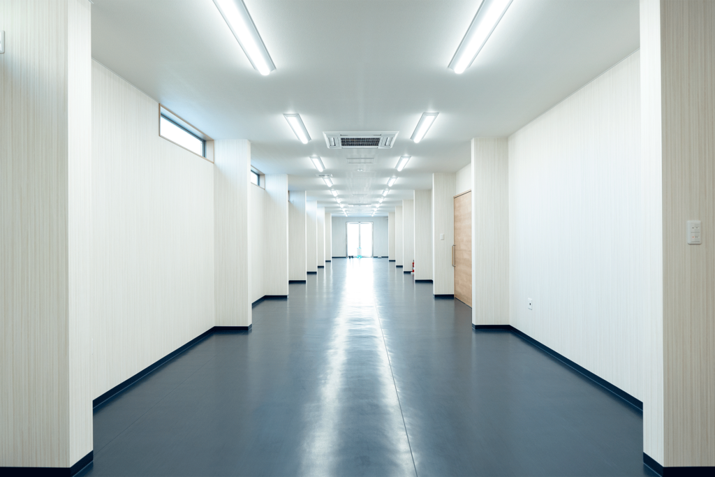また、幅4mの廊下では、空間を圧迫することなく自然な調和が図られています。