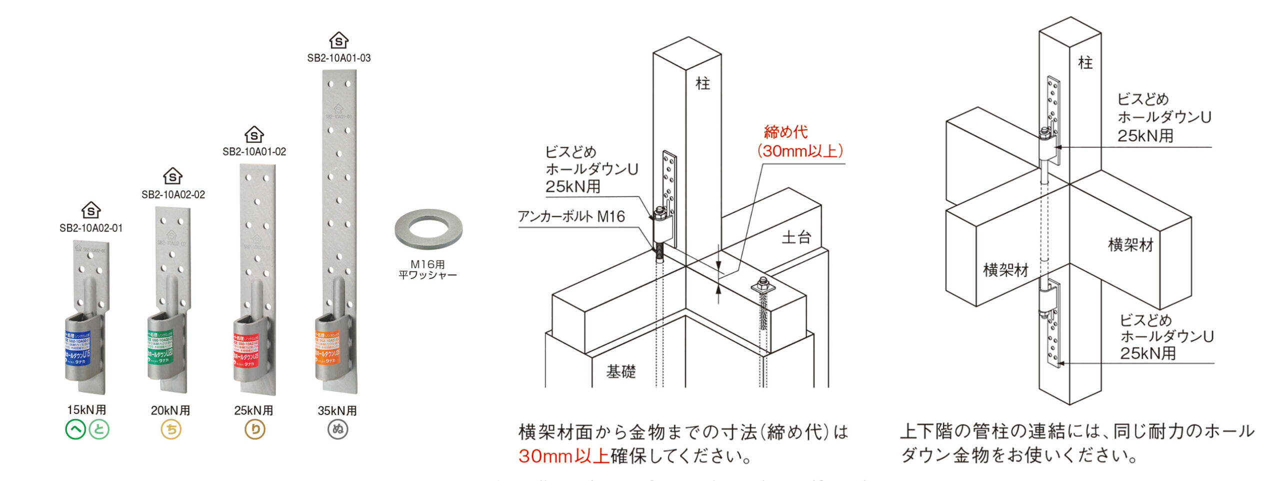 15kN用、20kN用、25kN用、35kN用の4種類があり、必要耐力に合わせて使用します。