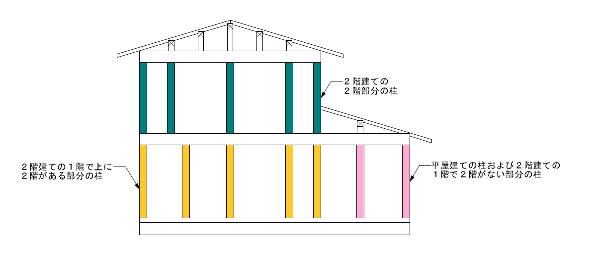 ② 2階建ての1階で上に2階がある部分の柱