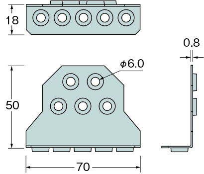 | 70×50×18×0.8(t) | AA200700 | 100枚 | 専用ステンレス角ビットビス TSB-46(1,000本) | 7.3 |