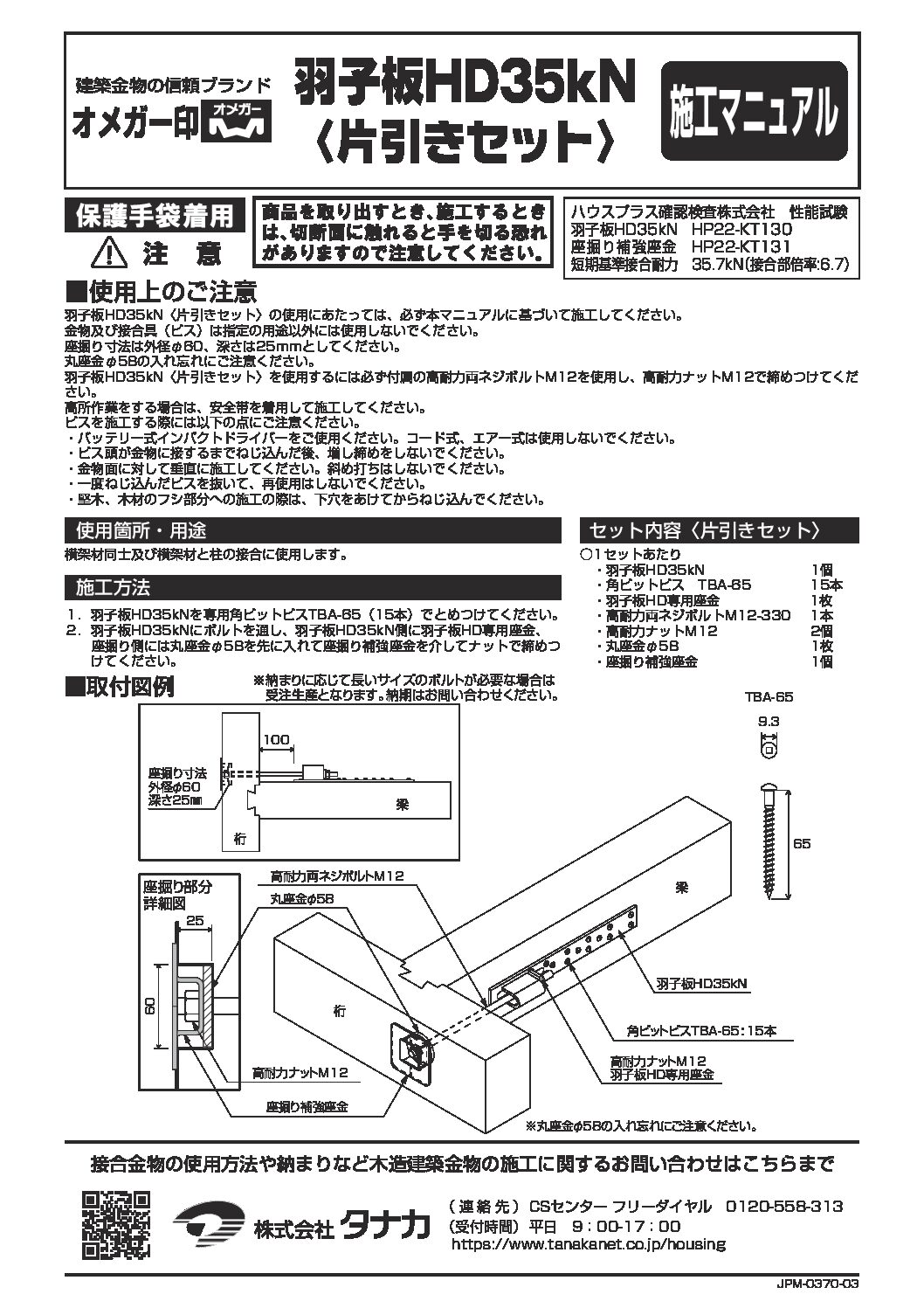 ●羽子板HD35kN〈両引きセット〉-取付図 ●羽子板HD35kN〈両引きセット〉-製品図 ●羽子板HD35kN_参考標準図Ver1.0