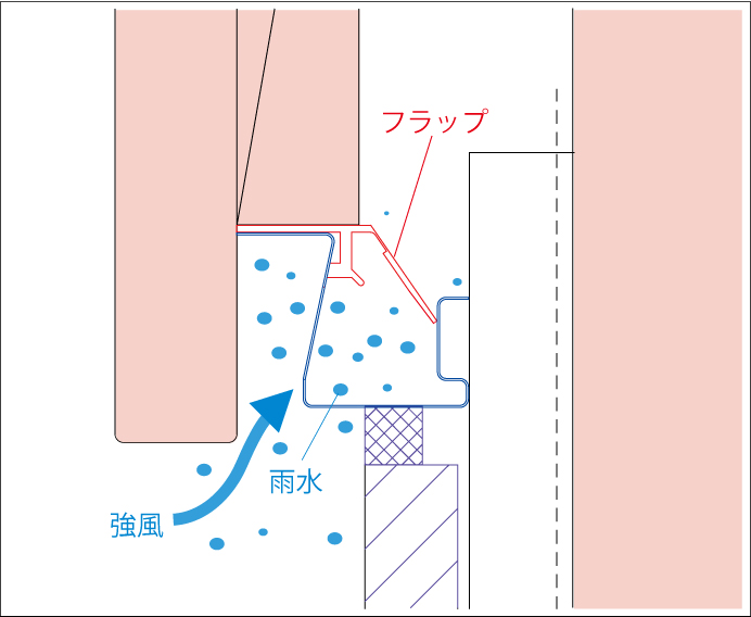 ③強風時は内臓フラップが作動し、雨水の進入を防ぎます。