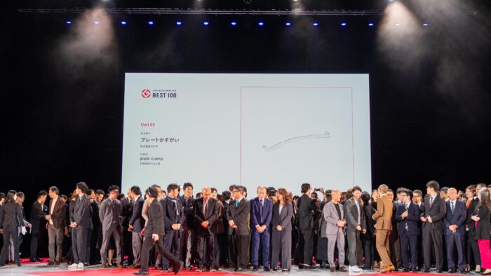 また、プレートかすがいが≪グッドフォーカス賞[技術・伝承デザイン]≫及び≪グッドデザイン・ベスト100≫を受賞した事に伴い、グッドデザイン・ベスト 100 紹介の際に壇上に上がる機会も頂きました。